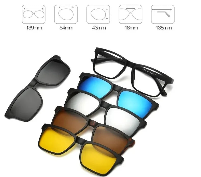 Square Model 1 - 6 in 1 Magnet Clip on Sunglasses