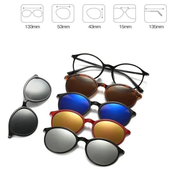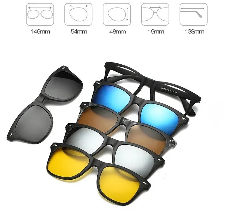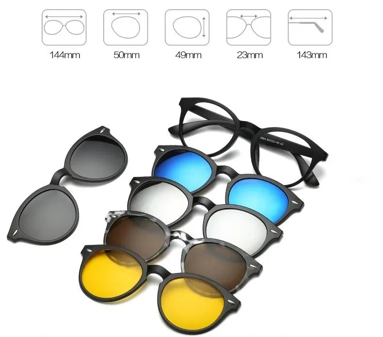 6 in 1 Magnet Clip on Sunglasses - Men and Women